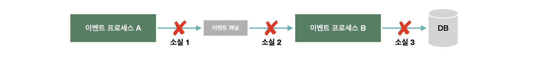 비동기 통신을 할 때 데이터 소실은 언제나 중요한 관심사입니다. 하지만 이벤트 기반 아키텍처는 데이터가 소실될 만한 곳이 많습니다. 여기서 데이터 소실이란 메시지가 도중에 삭제되거나 최종 목적지에 도착하지 못한 상태를 말합니다.