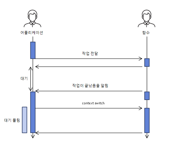 - ν¨μμμ μμ μ΄ λλ μλ£λ¨μ μ΄ν리μΌμ΄μ μκ² μ리면μ(Async) μ΄ν리μΌμ΄μ μ λκΈ° μνκ° νλ¦¬κ² λ©λλ€.