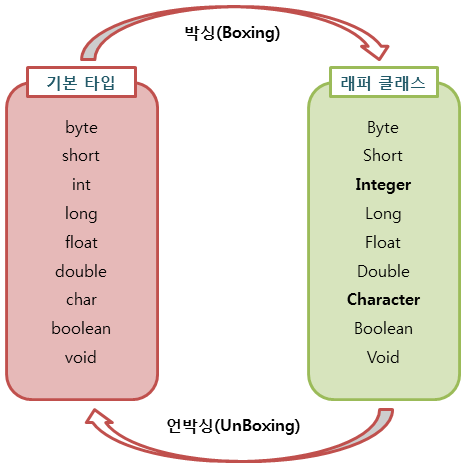 - UnBoxing - Wrapper class의 인스턴스에 저장된 값을 기본 타입의 데이터로 꺼내는 과정
