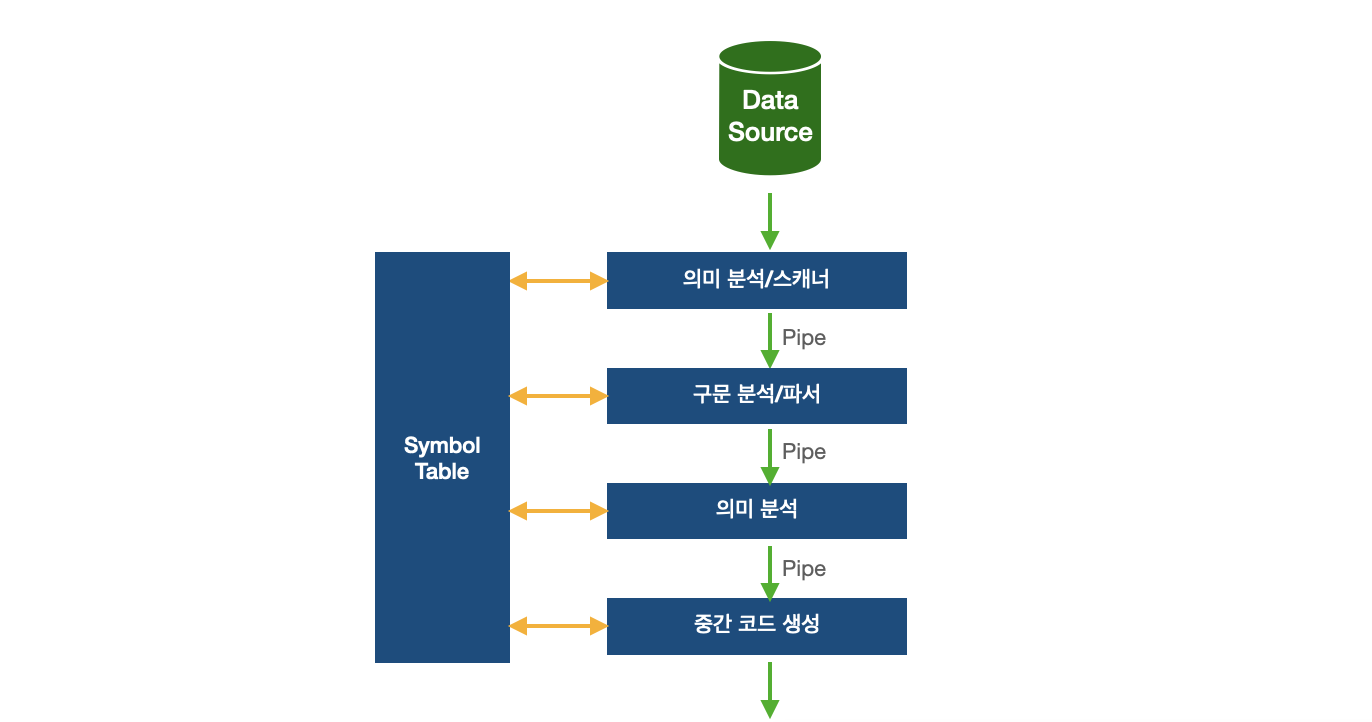 - 모든 단계들이 Symbol table을 사용하여 전역 정보를 공유합니다.