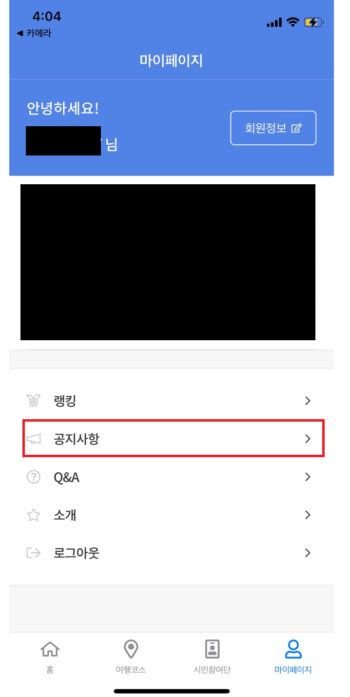 - 저는 아래 사진에 있는 공지사항 클릭 시 웹뷰로 보내는 프로세스 입니다.